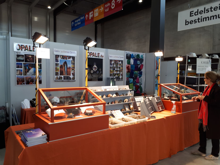 Messe-Equipment: Für den mobilen Einsatz verfügen wir über modulare Vitrinen-Bausätze inklusive Beleuchtung, ideal für Fachmessen im Bereich Mineralien und Schmuck.